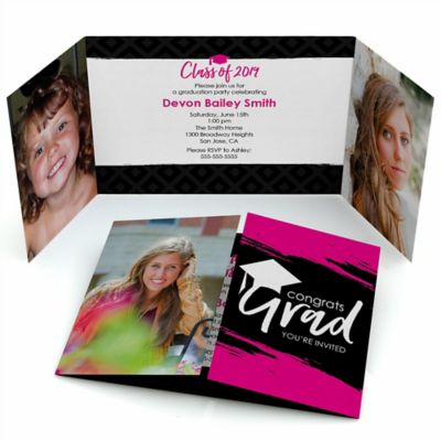 Ability to personalize both front, back and insides of card with design + photo options. Graduation Party Invitation Messages : Becoming a graduate is always a joy for anyone. Whether you are a parent of a graduate or the grad yourself, graduation party invitations can help you take the hassle out of informing your friends and family about the upcoming graduation.