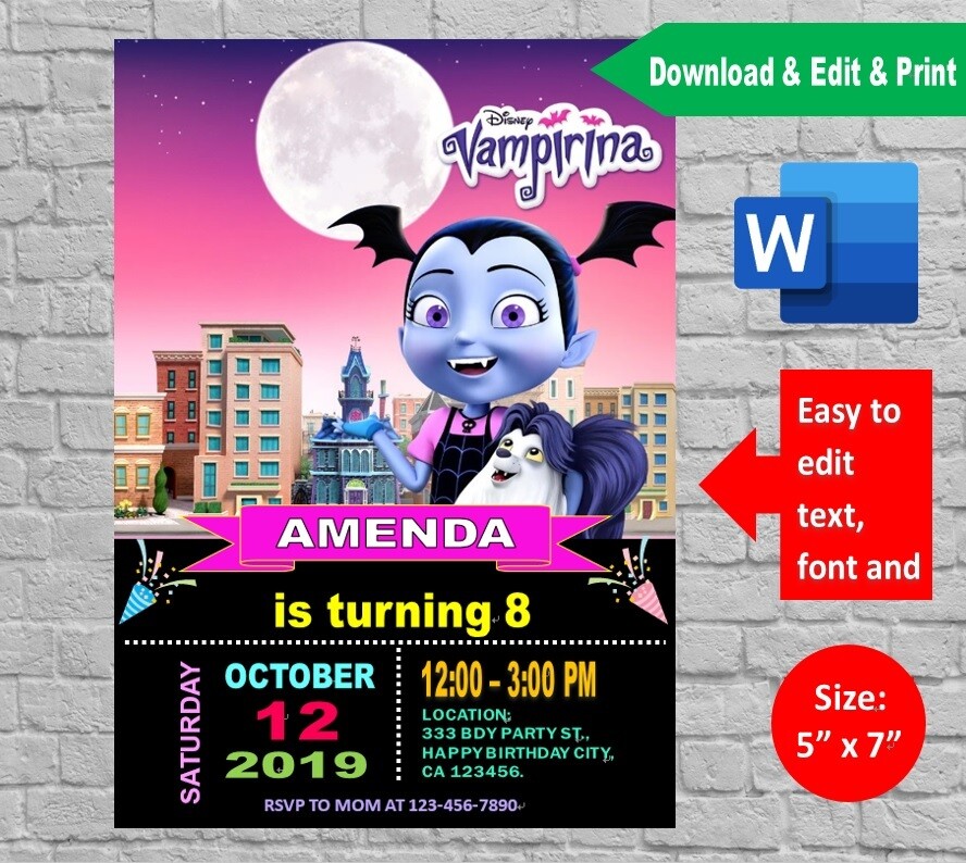 Vampirina Birthday Invitations Printable. Download Disney Vampirina Birthday Invitation Template ! (FREE PRINTABLE) downloadable Invitations Templates for your next awesome party. Vampirina is one of the vampire-themed movies that release for kids.