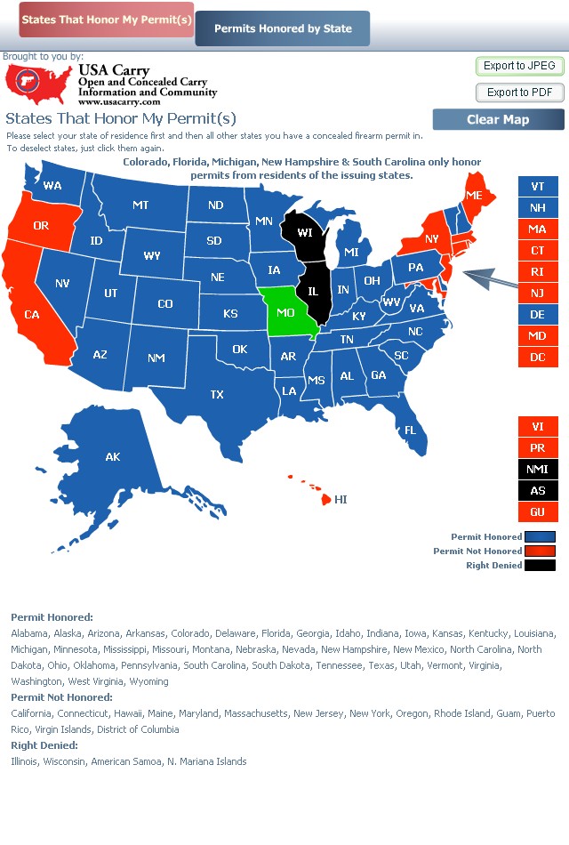 Download maps to be prepared for your travels. Concealed Carry, Permit Reciprocity Maps, Concealed Carry Permit Info by State, Firearm Forums, Firearm Instructors, Concealed Weapons Permits, and more! When there are any changes to reciprocity those will be automatically reflected on your website too!